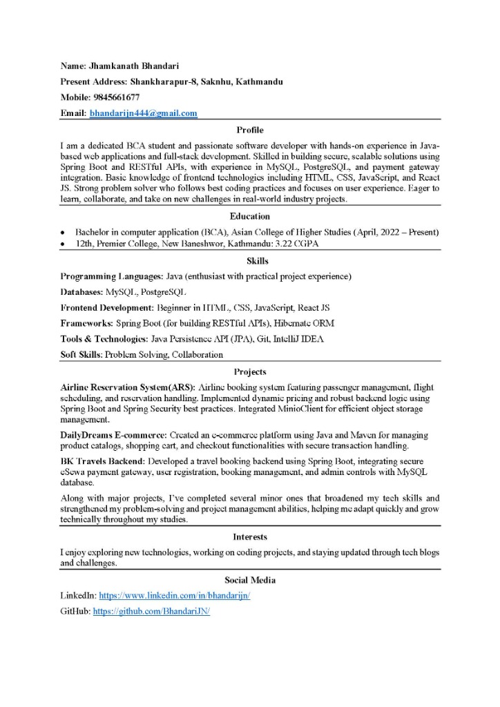 Passionate software developer with a strong foundation in Java-based enterprise applications. I specialize in building secure, scalable backend systems using Spring Boot, Microservices, and Cloud technologies. My goal is to engineer robust solutions that drive business value.